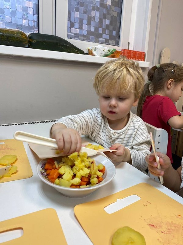 Занятия проходят интересно и разнообразно: дети занимаются творчеством, музыкой, йогой, приходит тренер по детской Зумбе, изучают окружающий мир, а еще они сами готовят!!!! Все занятия проводятся профессионально и с учетом возрастных особенностей детей. Очень часто приглашают профессиональный театр, детям скучать некогда.