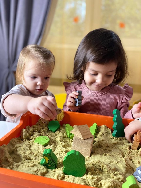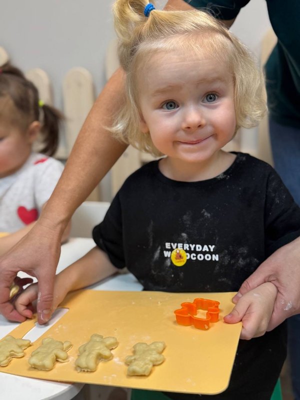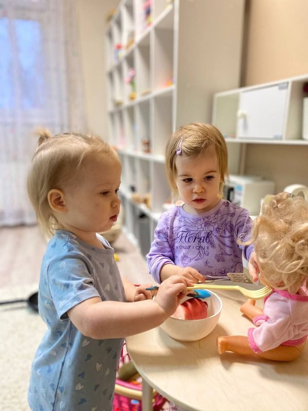 Преимущества: Большое разнообразие развивающих занятий (Английский язык, пальчиковые игры, лепка, рисование, песочная терапия, йога, кулинария (родителям перепадают испеченные детьми печеньки) и еще очень много полезных развивающих занятий)